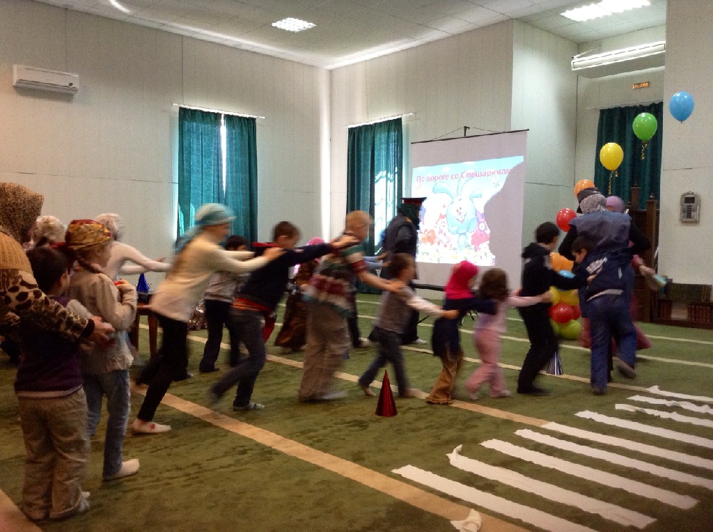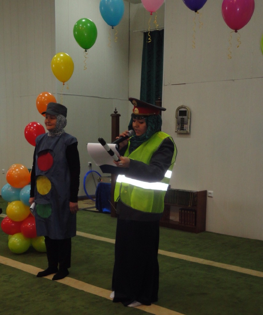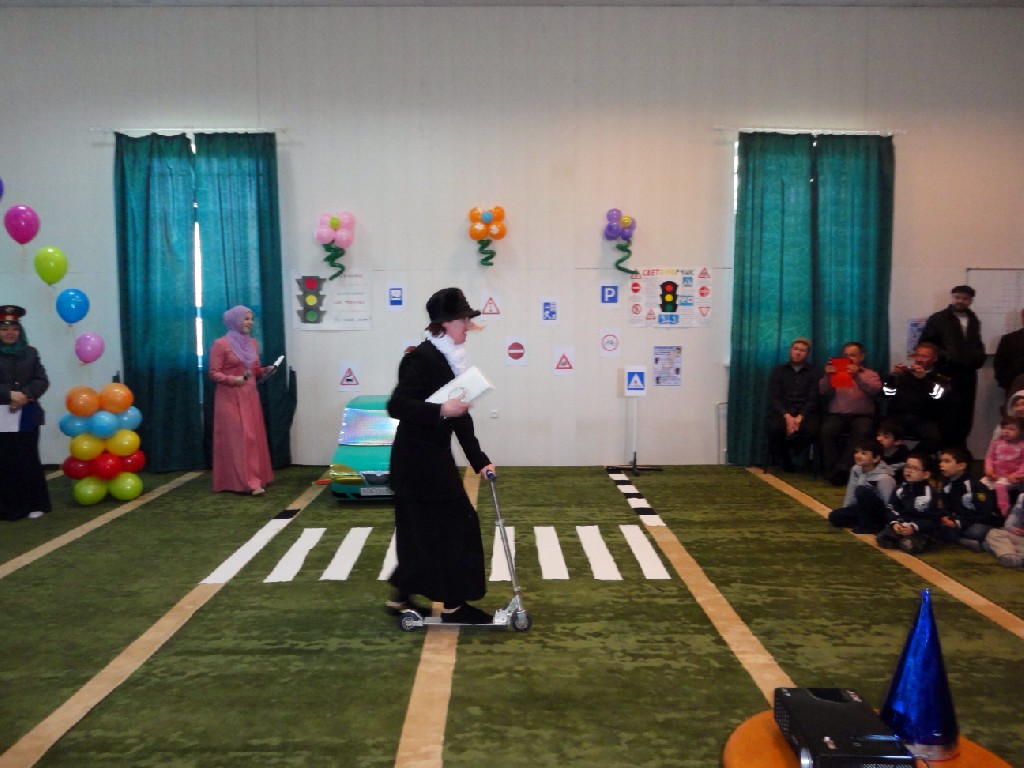 Мероприятие началось с чтения аятов Священного Корана в исполнении одного из ребят Тимура Шафеева, после чего дети узнали от ведущей о том, почему необходимо знать и соблюдать ПДД, и вспомнили о том, кто является участниками дорожного движения.