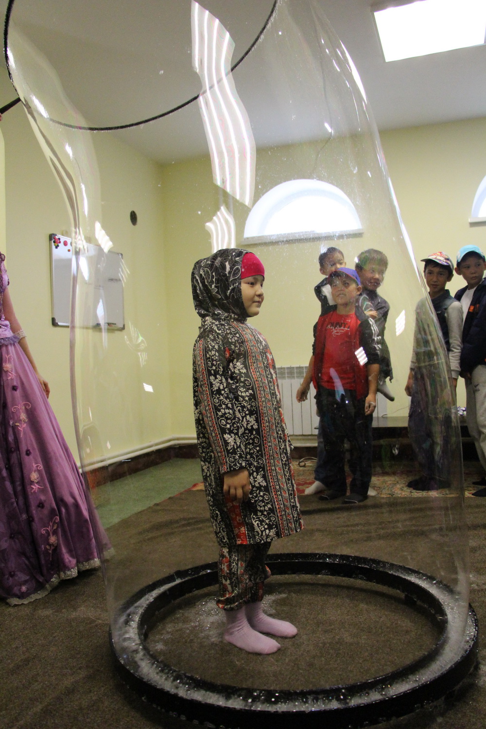 Кульминацией детского праздника стало шоу мыльных пузырей. Ребятишки разных возрастов с восторгом наблюдали за происходящим, смогли сами поучаствовать и даже оказаться внутри большого пузыря. Воскресное мероприятие завершилось чаепитием.