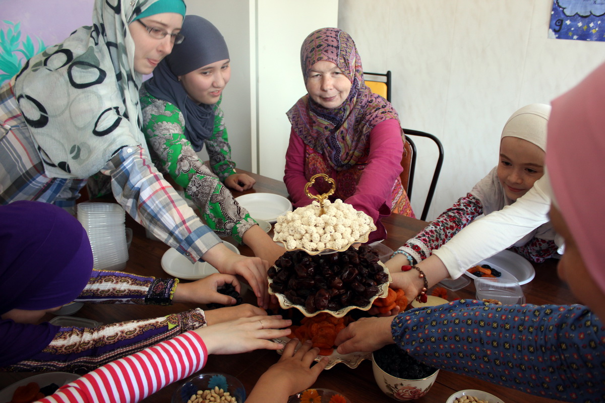 Взяв за основу хадис, в котором Пророк (мир ему) сказал: «Моя умма будет пребывать в достатке до тех пор, пока не начнет откладывать разговение на более позднее время и совершать сухур с ночи», активисты воскресной школы «Мэктэб» и организовали свой мастер-класс. Азы кулинарии постигали более 10 девочек.