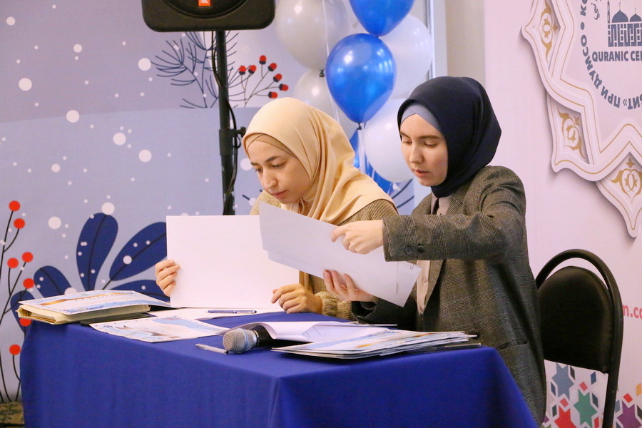 После это были представлены члены жюри – в судейскую коллегию вошли преподаватели центра «Зейд бин Сабит» Амина Дмитриенко и Зарема Эльсаева. Им предстояло оценить конкурсантов по таким критериям, как знание текста и правильное произношение.