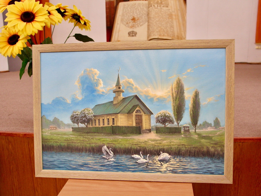 Вечер завершился чтением стихов на татарском языке и презентацией картины Рафика Ильясова. На полотне изображена одна из мечетей Алтаты, которая не сохранилась на сегодняшний день.