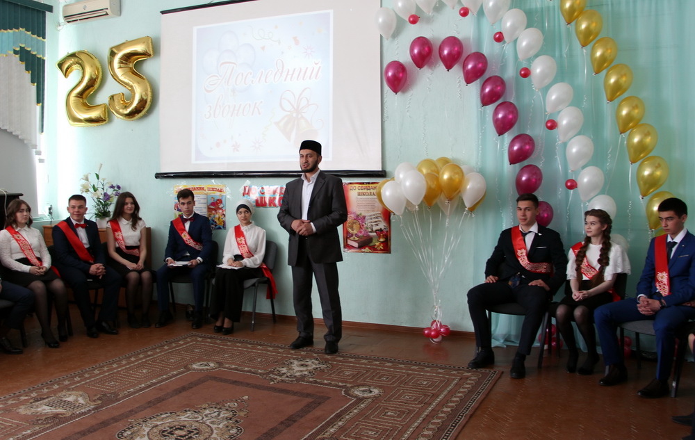 В своем выступлении Расим-хазрат Кузяхметов отметил, что вчерашним школьникам предстоит столкнуться с испытаниями во взрослой жизни. «Если научитесь надеяться на Всевышнего и на свои силы, то у вас все получится. Будьте полезными людьми для своей семьи, общества и государства», — сказал Расим-хазрат.