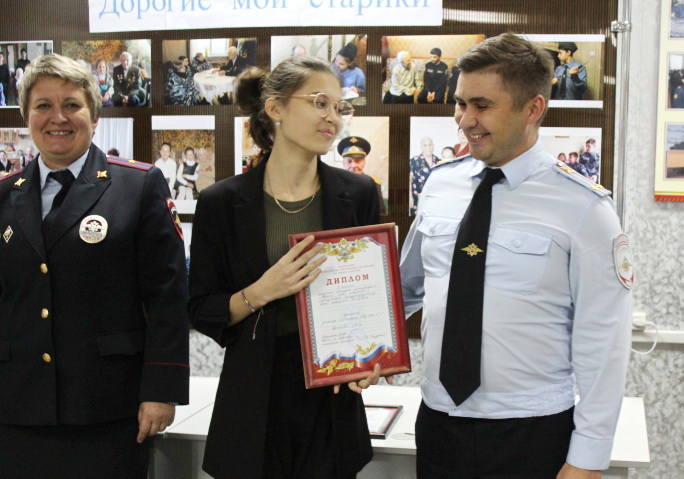 В торжественной обстановке школьники получили дипломы и призы. Их поздравили заместитель начальника ОУУПиПДН УМВД России по г.Саратову, майор полиции Елена Кузьмина и заместитель начальника полиции УМВД России по г.Саратову, подполковник полиции Дамир Бакиев.