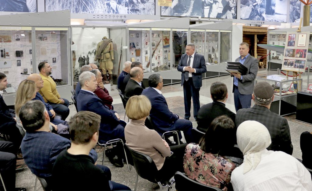 Встреча проходила в Саратовском историко-патриотическом комплексе «Музей боевой и трудовой славы» под руководством председателя регионального отделения ОГО «Ассамблея народов России» Саратовской области, председателя Общественной палаты Саратовской области, директора Музея боевой и трудовой славы Бориса Шинчука.
