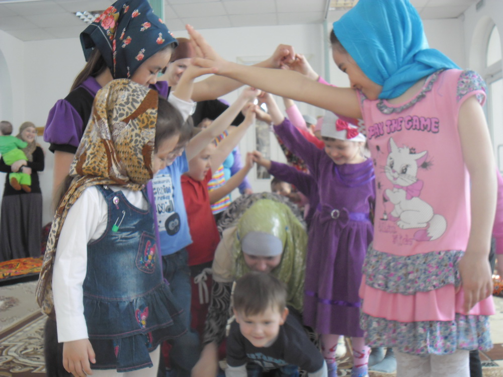 Чтобы маленьким прихожанам было комфортно в мусульманском храме и хотелось посещать его чаще, активистки «Аиши» устроили для них целое мероприятие, которое проходило в игровой форме. Игры были выбраны не случайно, каждая из них была направлена на понимание блага, данного нам Всевышним.