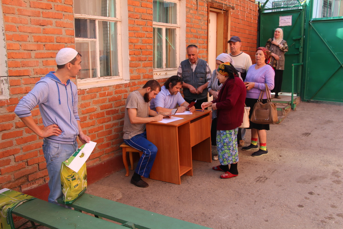 Так как праздник жертвоприношения особенен тем, что в основе своем имеет благодетельство, прежде всего общиной была организована раздача жертвенного мяса для нуждающихся и малоимущих. Не забыли организаторы и о инвалидах и ветеранах, которые не имеют возможности приехать в пункты раздачи сами. Специально для этого несколько прихожан мечети, дабы совершить благое дело, сами отправились домой к нуждающимся и поделились с ними праздником.