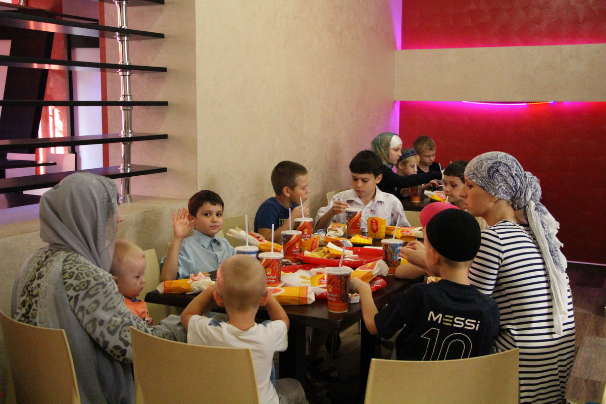 Такого же мнения придерживаются активисты женской организации «Родник», воскресной школы «Мэктеб» и коранической группы «Аль-Фуркан». Объединив общие усилия, они устроили для юных мусульман Саратова целое шоу! Под лозунгом «Поделись своей добротой» организаторы поведали малышам об истории Курбана в форме игр и викторин. В то же время праздничный стол для детей валился от обилия всего сладкого и вкусного — ведь это неотъемлемая часть настоящего праздника!