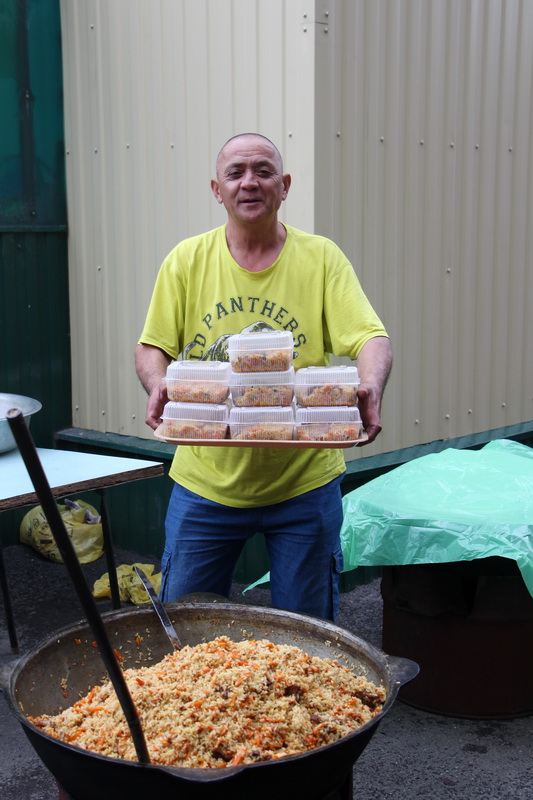 Ежегодно во второй день его празднования в областном центре организовывается раздача угощений. Традиционным блюдом является ароматный плов, приготовленный в больших казанах из мяса жертвенных животных.