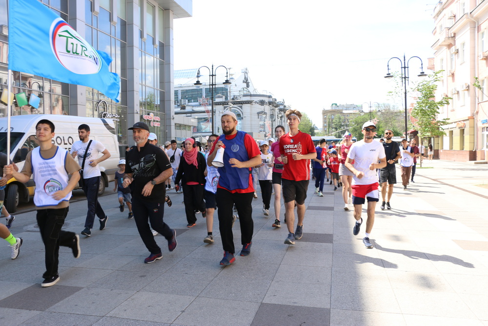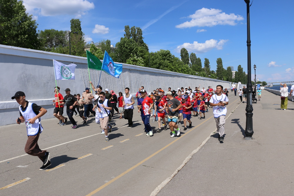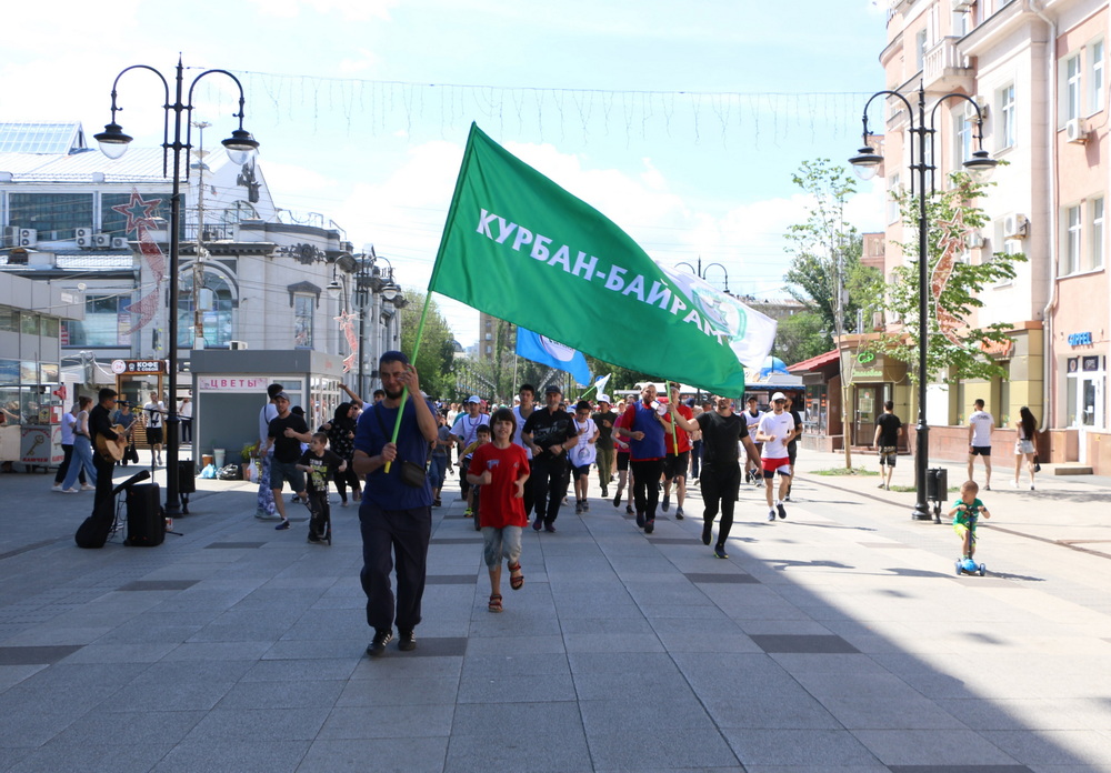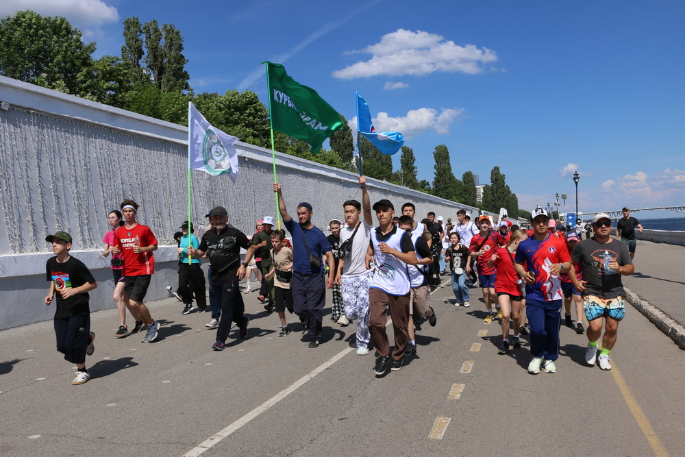 Участники совершили разминку и получили инструктаж от организаторов. В 15:00 был дан старт забега. С высоко поднятыми флагами с надписью «Курбан-Байрам» и названиями общественных организаций атлеты пробежали по самому центру Саратова — проспекту Столыпина и улице Волжской, а затем по набережной Космонавтов. За ними бодрым шагом следовала также пешая группа.