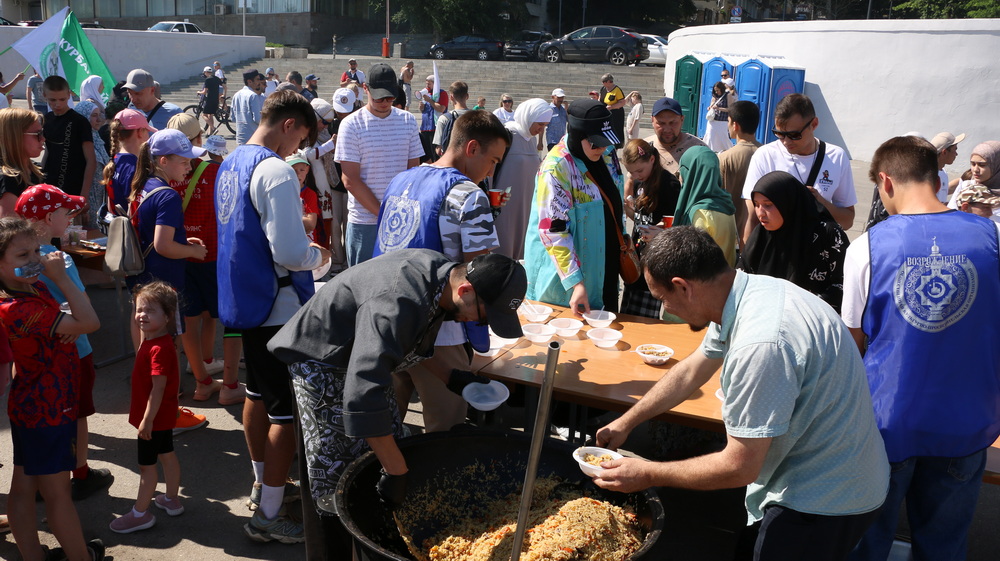 Прихожане Саратовской Соборной мечети и представители общественных и национальных организаций собрались в этот день перед зданием цирка. Поддержать последователей Ислама и пробежаться вместе пришли спортсмены клуба «Альянс», а также жители и гости Саратова разных возрастов, национальностей и вероисповеданий.