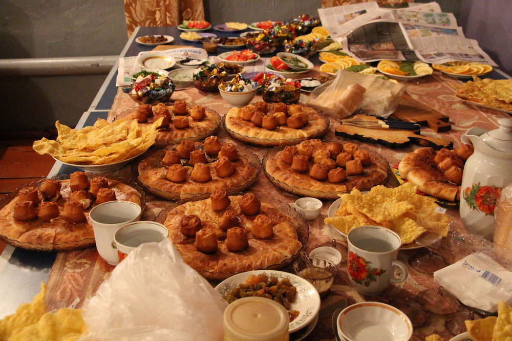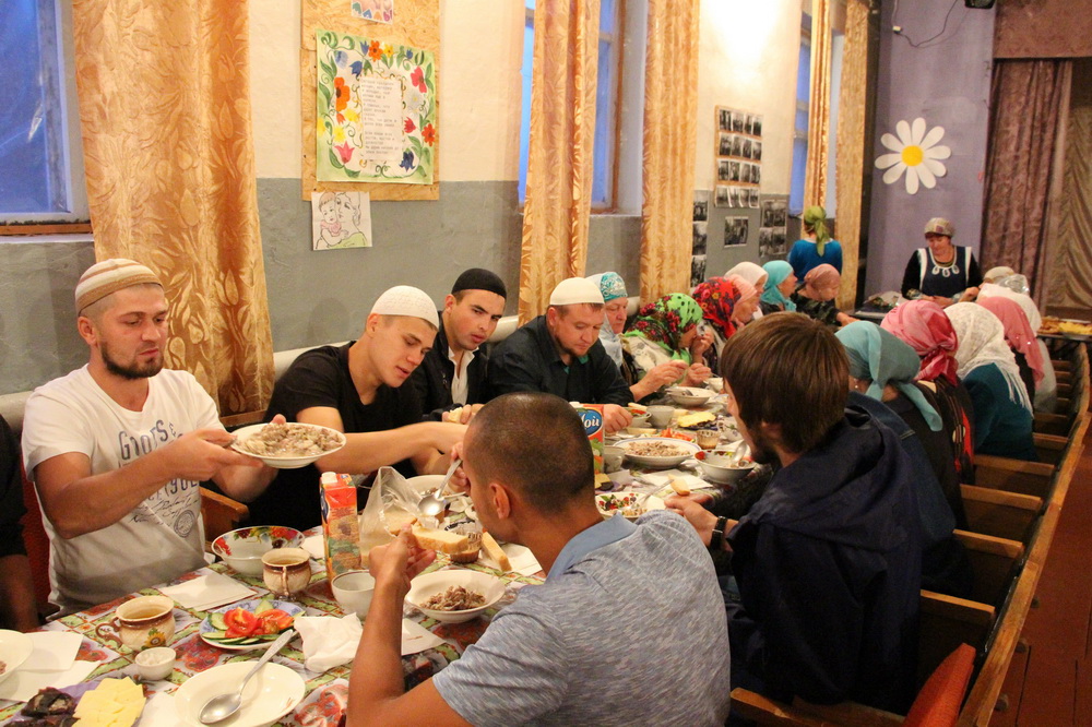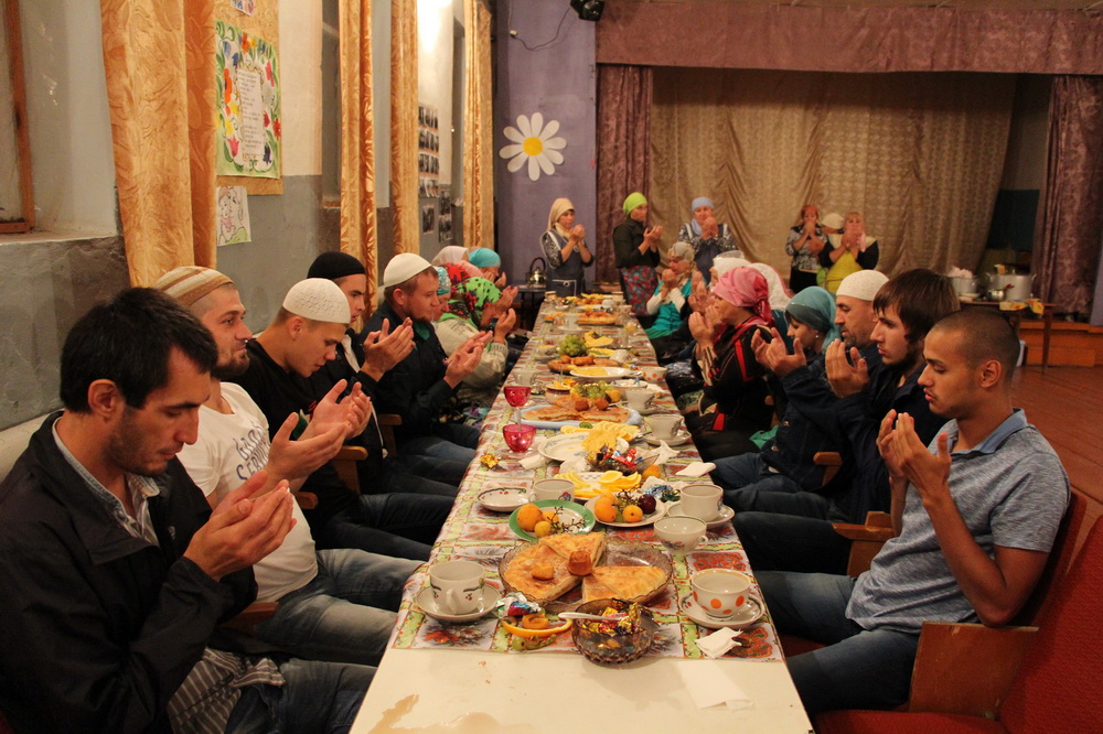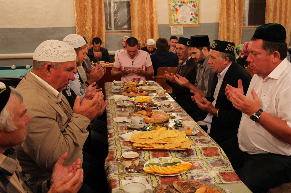 Совершив вечерний Магриб-намаз в мечети, постящиеся направились в местный дом культуры, где их уже ждали накрытые столы с национальными татарскими блюдами. Совместную трапезу разделили свыше 50 человек.